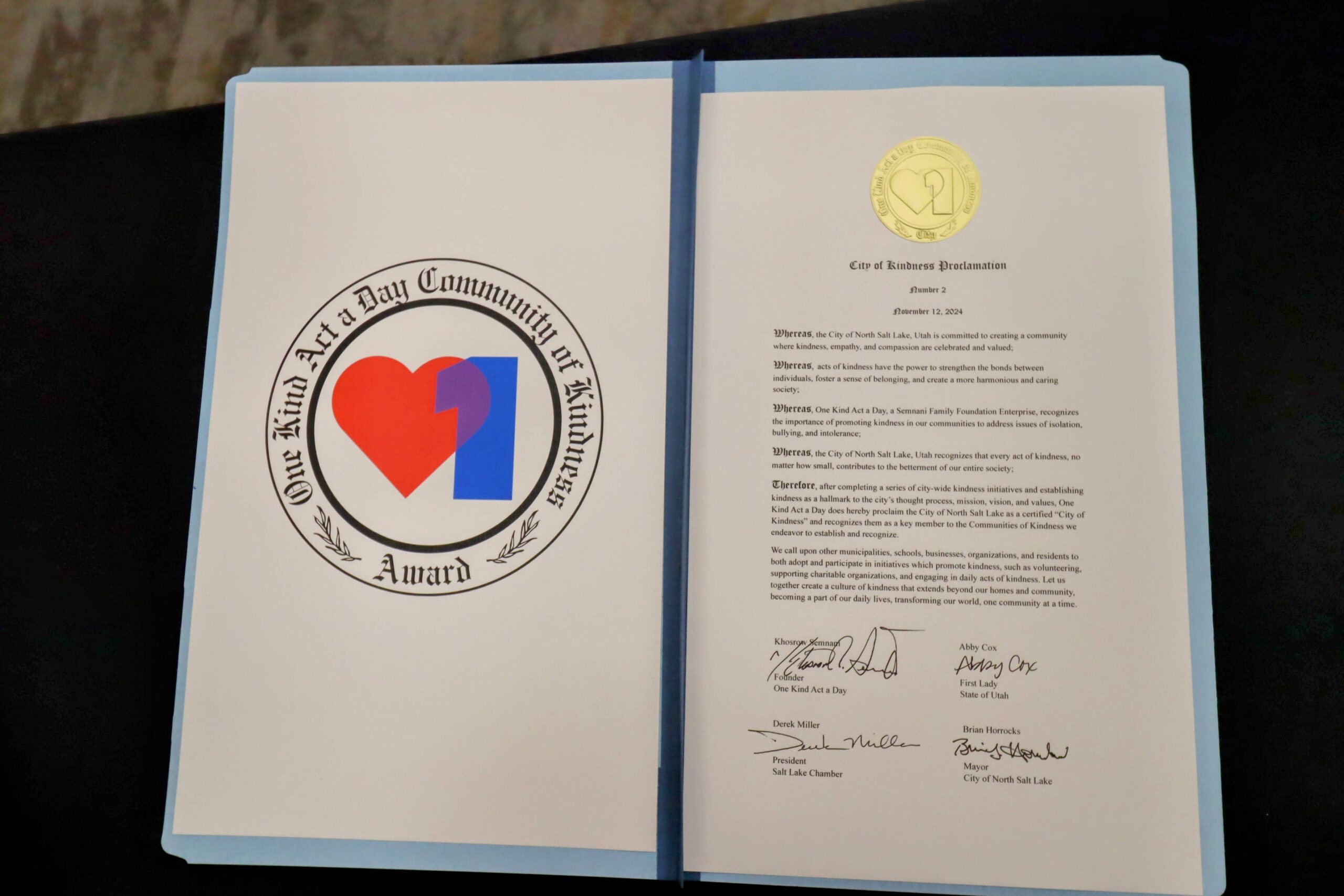 Becoming a Certified City of Kindness with One Kind Act a Day (OKAAD) is all about bringing a community together around kindness. The journey starts when city leaders, schools, businesses, and residents commit to making kindness part of everyday life. With support from OKAAD, cities set kindness goals, launch community-wide initiatives, and create spaces where compassion and inclusion can thrive. From service projects to school programs and city events, each step builds a stronger culture of kindness. Once these milestones are reached, the city is recognized as an official City of Kindness, joining a growing movement of communities working to make the world a kinder place—one act at a time.